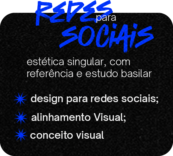 ei, pprt aqui a gente chama nossos serviços de rebeldias heheatuo com foco e experiência em redes sociais, criando designs para distintas plataformas, além de criar alinhamentos visuais que direcionam a estética da sua marca. também desenvolvo conceitos visuais para projetos e campanhas, com impacto e relevância.no viés publicitário (sim, eu sou quase publicitário formado ;), realizo direção criativa para campanhas, mapeio tendências do seu nicho, te oriento sobre como aplicá-las estrategicamente e guio sua marca a chegar até o público certo por meio de estratégias visuais conectadas ao design.Vem comigo, fio!!